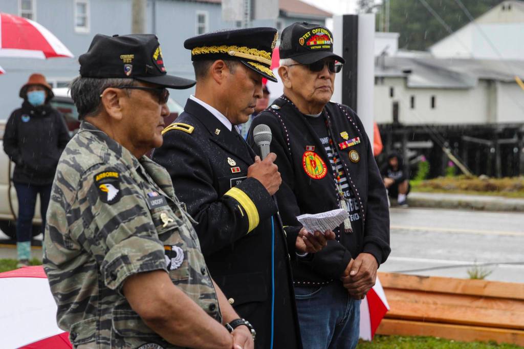 This ceremony marks another totem pole raised in the Southeast for veterans, a tradition he’s taken part in for years, said George Bennett Sr., a Vietnam War veteran and co-host of the ceremony. The ceremony was held in a largely traditional Alaska Native fashion, though some parts were truncated slightly, Bennett said.