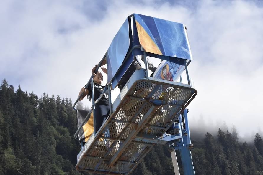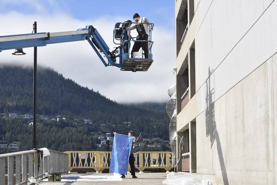 On Monday, a new image started to take shape on the formerly blank south wall of the Marine Parking garage, the structure on which the downtown branch of Juneau’s public library sits.