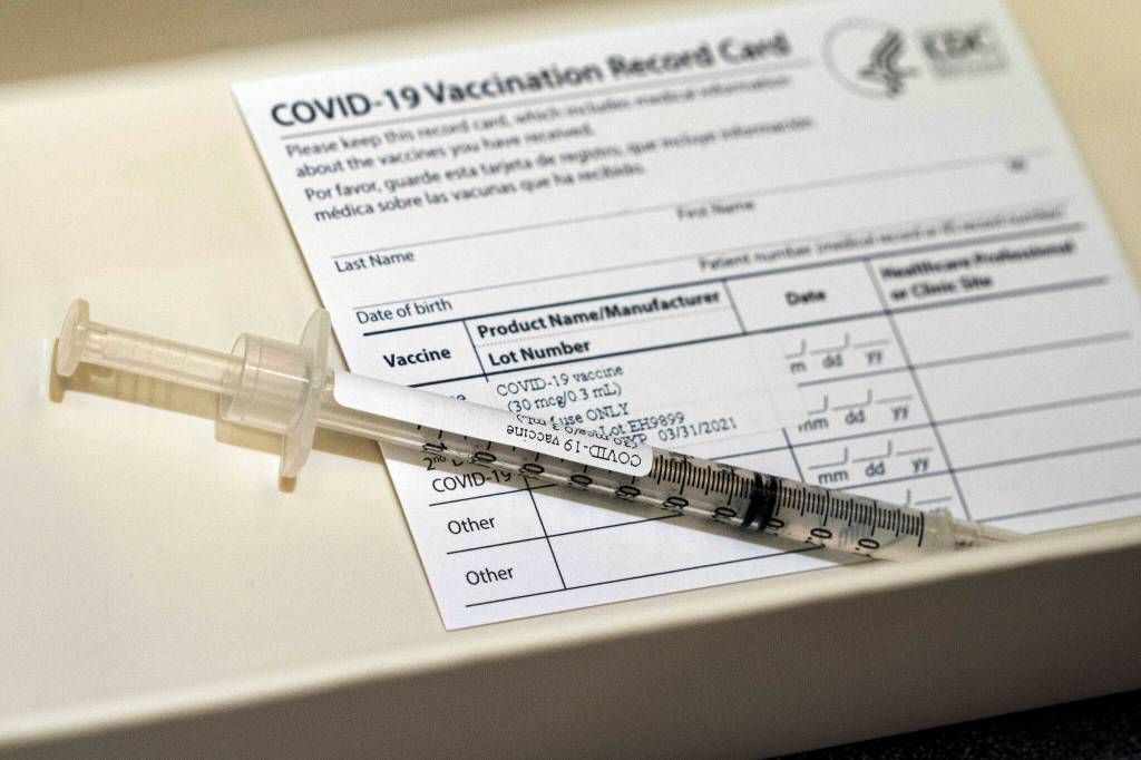 In this December 2020 photo, a syringe containing a dose of the Pfizer COVID-19 vaccine sits in a container during a vaccine clinic at Providence Alaska Medical Center in Anchorage, Alaska. Overwhelmed by a surge in COVID-19 patients, Providence Alaska Medical Center, Alaska’s largest hospital, on Tuesday, Sept. 14, 2021, implemented crisis standards of care, prioritizing resources and treatments to those patients who have the potential to benefit the most.(Loren Holmes / Anchorage Daily News via AP, Pool)