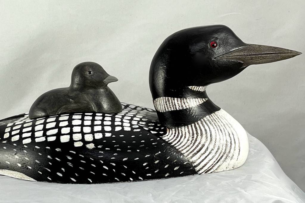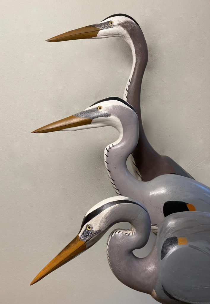 “My aim is to carve and paint wood to evoke various bird species through the use of form, color and pattern,” Robus said in an artist statement. ‘The style of 19th and 20th century decoy carvers, who created utilitarian objects without excessive detail, has always appealed to me – the challenge is to do just enough to portray the ‘feel’ of a bird using shape, color, and postural clues without fuss or formality.