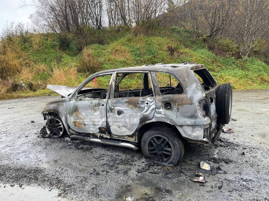 The vehicle will be towed away, Jager said, to remove the eyesore of the slagged vehicle as well as prevent children playing in the area from doing themselves a mischief. Jager said there’s no indication at this time that this fire is related to other vehicle fires in the Juneau area.