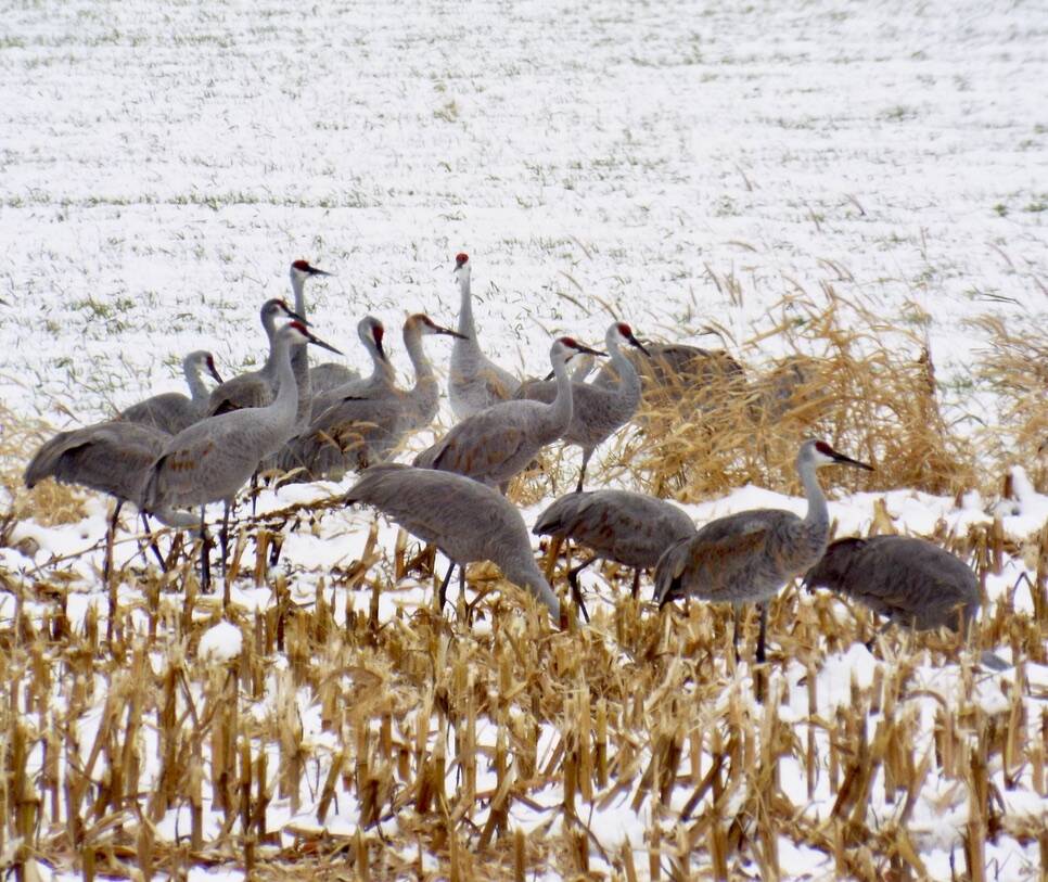 Sandhill cranes, like the ones in this photo, come through Southern Wisconsin every year from their nesting grounds farther north; they nest mainly across northern North America and most of them migrate to Texas and northern Mexico or Florida for the winter(. Courtesy Photo / J.S. Willson)