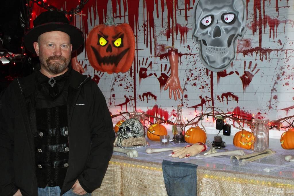 In October, Earls decorated his yard and transformed his garage into a haunting attraction celebrating the spooky season.