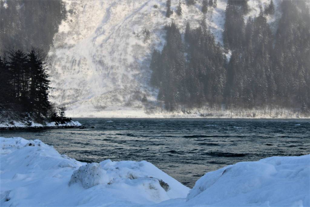 He noted that storm-force winds are whipping up 15-foot waves in the Lynn Canal.