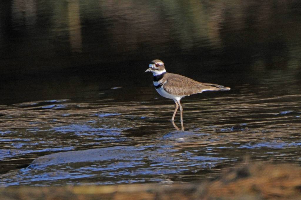 Soon thereafter, I was told that killdeer are not uncommon over in the Fish Creek area, so of course I went over to look. In the parking lot, I met someone coming off the trail who reported seeing lots of killdeer out on the west side of the berm leading to the “island.” But — again, of course — by the time I got out there, they were not to be seen.