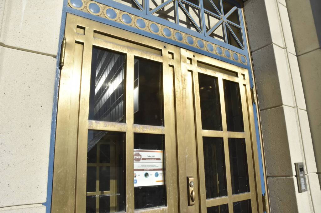 The front doors of the Alaska State Capitol was missing the sign notifying visitors of the building's masking requirement on Wednesday, Feb. 23, 2022, after an early morning by lawmakers changed the rule. Masking rules have been in place since October 2020, much to the consternation of some lawmakers. (Peter Segall / Juneau Empire)