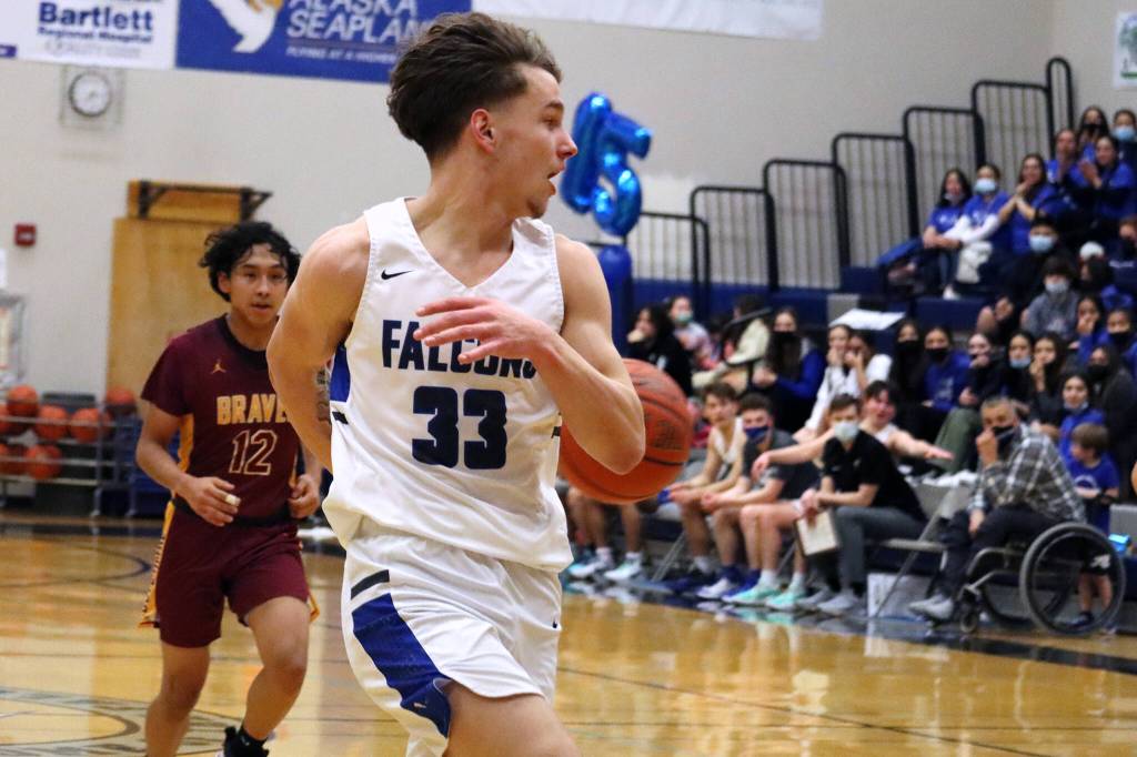 All six of the seniors scored points in an 84-54 win against visiting Mt. Edgecumbe High School. The win in what will be the last home game of TMHS’ season nudges the Falcons’ record past .500 and to 11-10.