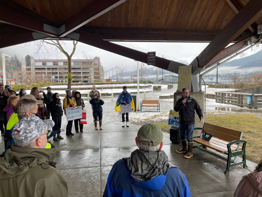 “I’m just afraid. I’m scared for people there and doing what I can do to support them,” said Viktor Tkachenko, who moved to Juneau from Ukraine to stay with family a year ago. “It’s what we can do, go out in the streets and show your support.”