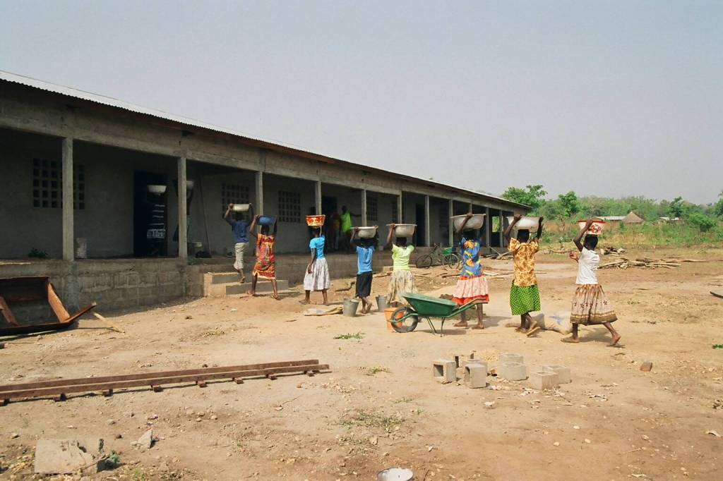 Students help build a secondary school funded by a Peace Corps grant in Dimori, Togo in 2004. Now, a Juneau woman who helped get the first school built is helping to fund a new larger school to meet expanded demand.