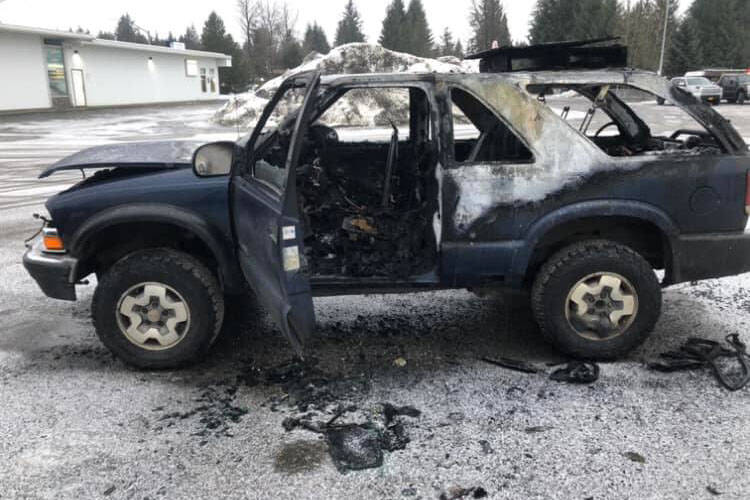 An improvised heating device sparked a February fire in a vehicle near Donna’s, totally destroying the vehicle. (Courtesy photo / Capital City Fire/Rescue)