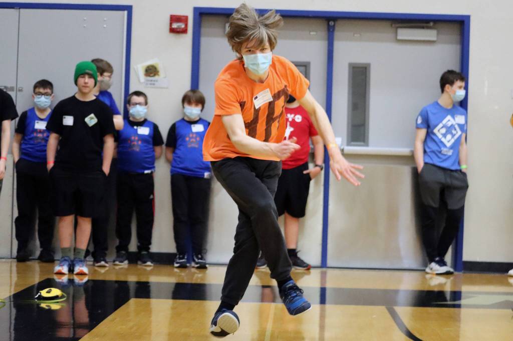 Over 100 athletes from 20 communities competed in 10 events in Thunder Mountain High School’s gym. Athletes traveled from Hoonah, Haines, Skagway, Petersburg, Metlakatla, Hydaburg, Anchorage, Nome, Fairbanks, , Bethel, Homer, the Pacific Northwest, Chickaloon, Seward, White Horse, Kenai, Kotzebue, Lower Kuskokwim, Kwigillingok and Fort Simpson.