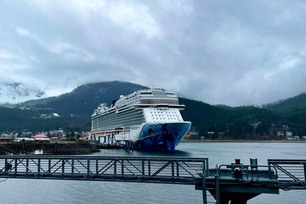 A dreary Monday didn’t dampen spirits, as Juneau welcomed a once-familiar sight to town once more, as the Norwegian Bliss, first large-deck cruise ship 2022, pulled into port.