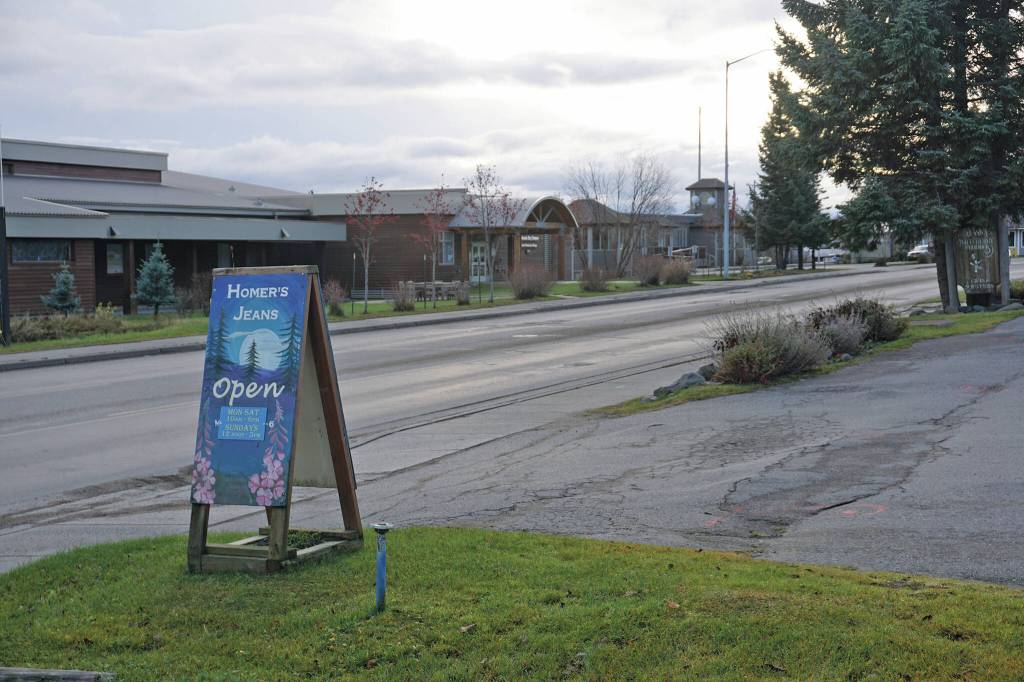 Homer Police said this area on East Pioneer Avenue in front of Homer’s Jeans and the Kachemak Bay Campus was where search dogs indicated a “car pick up,” or a scent that suggested a person had gotten in a vehicle, for Anesha “Duffy” Murnane. Murnane was last seen in Homer, Alaska, on Oct. 17, 2019. This photo was take on Nov. 10, 2019. (Photo by Michael Armstrong/Homer News)