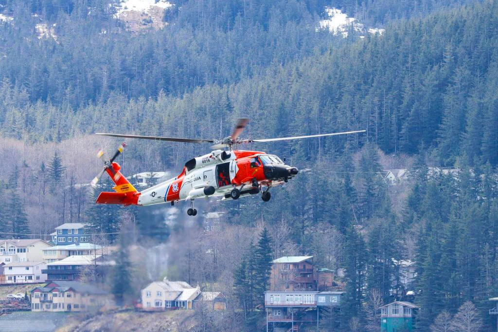 Coast Guard Sector Juneau deployed a number of assets including an MH-60 Jayhawk to search for a woman reported fallen overboard from a cruise ship near the Eldred Rock Lighthouse in the Lynn Canal on. May 17, 2022. (Michael S. Lockett / Juneau Empire File)
