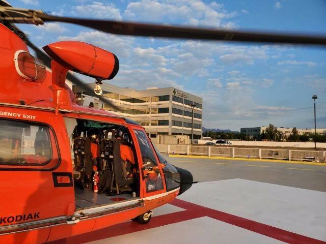 A Coast Guard Air Station Kodiak helicopter aircrew medically evacuated an injured crewmember from a fishing vessel near Esther Island to an Anchorage hospital on June 16, 2022. (U.S. Coast Guard / Courtesy Photo)