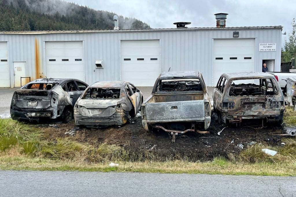 At around 5 a.m. Tuesday, CCFR responded to a vehicle fire at Sewillis Quality Auto Body on Alpine Avenue in the Mendenhall Valley. Firefighters found multiple vehicles on fire within the lot, according to a CCFR social media post, and a total of five vehicles were damaged.