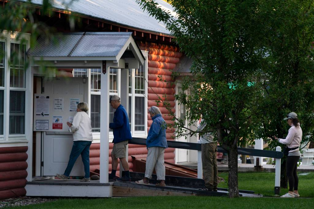 Voters wait in line outside a polling place during the Republican primary election in Wilson, Wyo., Tuesday, Aug. 16, 2022. (AP Photo / Jae C. Hong)