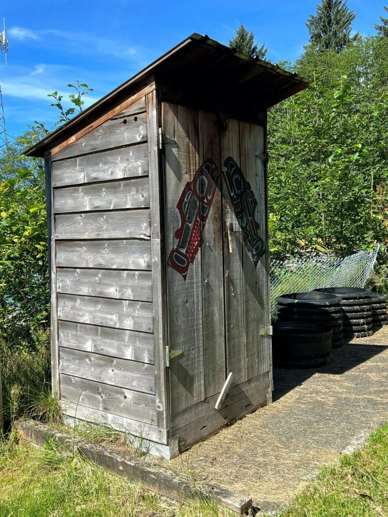 Around me the alder trees have grown larger; the big spruce tree above us is still healthy and full of spruce pinecones. Salmonberry and thimbleberry bushes have grown thicker next to the woodpile. I think about how all this is connected to our daily life—alder for the smokehouse, fish slime making the bushes grow, and smoked fish for us to eat and share. Life goes around and around. It is a relationship. In Indigenous worldviews, preserving relationships to the land and caring for the land, involves practicing community values while interacting with the land. We don’t separate ourselves from the values.