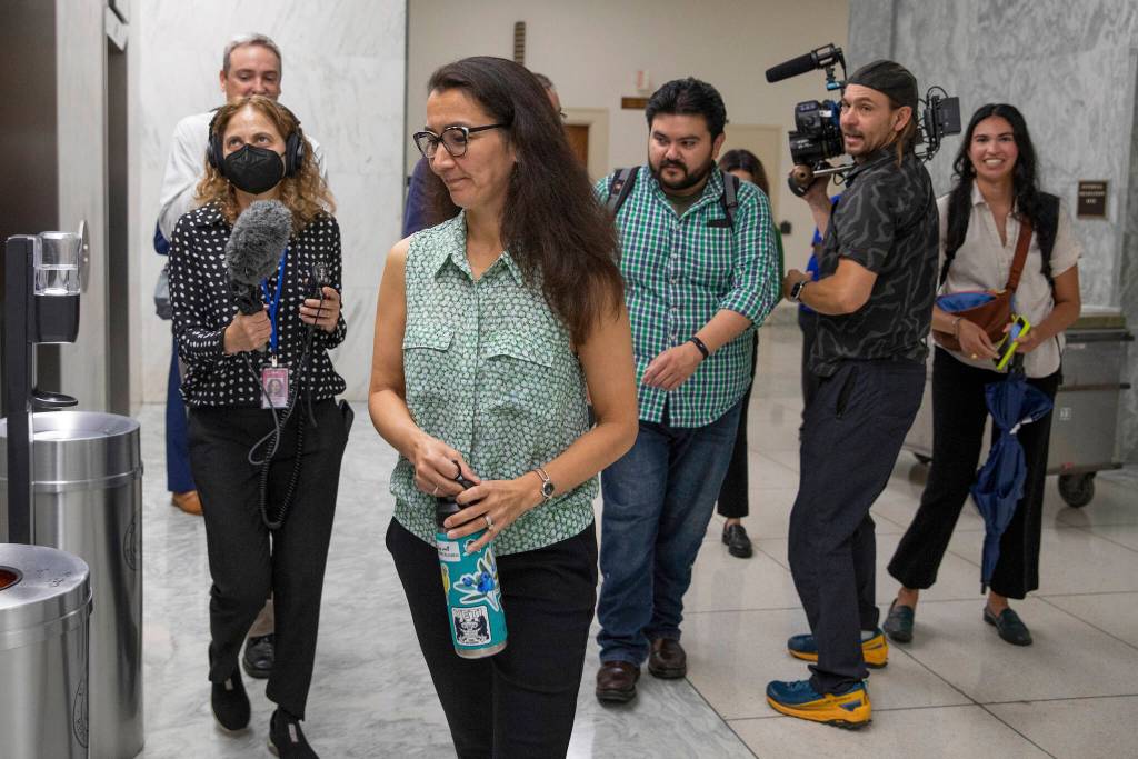 Rep. Mary Peltola is followed by her staff and members of the media at the U.S. Capitol in Washington on Monday, a day before she was sworn in after winning Alaska’s special election in August. As as result of her win she has since far outraised the two Republican challengers she will again face in the November general election. (AP Photo/Amanda Andrade-Rhoades)