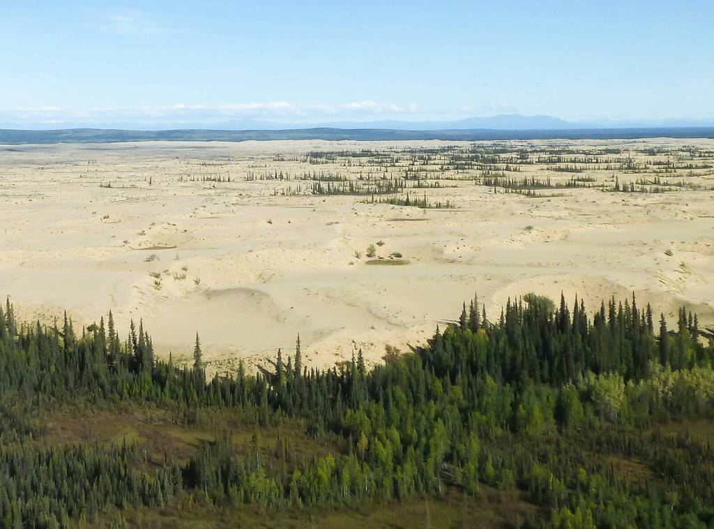 “The sand was coming from glaciers in the Wrangell and Nutzotin mountains to the south and east. There are smaller patches of dune all along the Tanana River up to the Canada border, and just across the border there is an enormous dune field that I think is much older.”