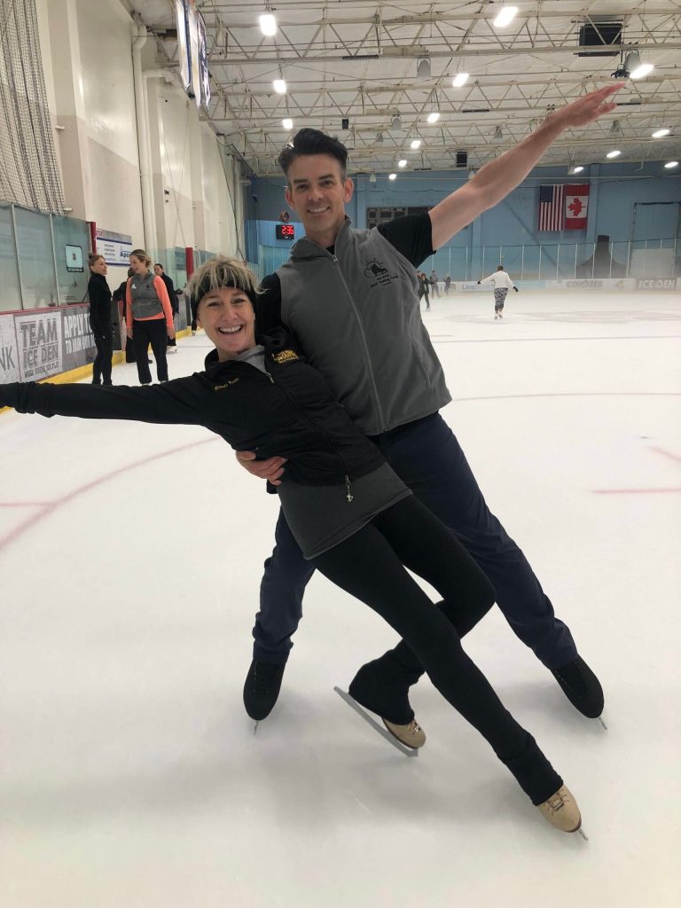 Wendy Vuille poses with skater Brendyn Hatfield at the Arizona Adult Skating Camp. (Courtesy Photo / Wendy Vuille)