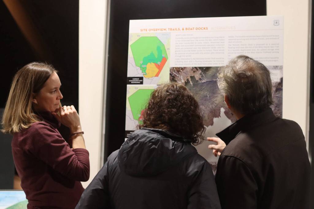Dozens of people Tuesday evening got a chance to get better acquainted with proposals to overhaul the Mendenhall Glacier Recreation Area and further weigh in on plans to make sizable changes to Juneau’s most-visited site.