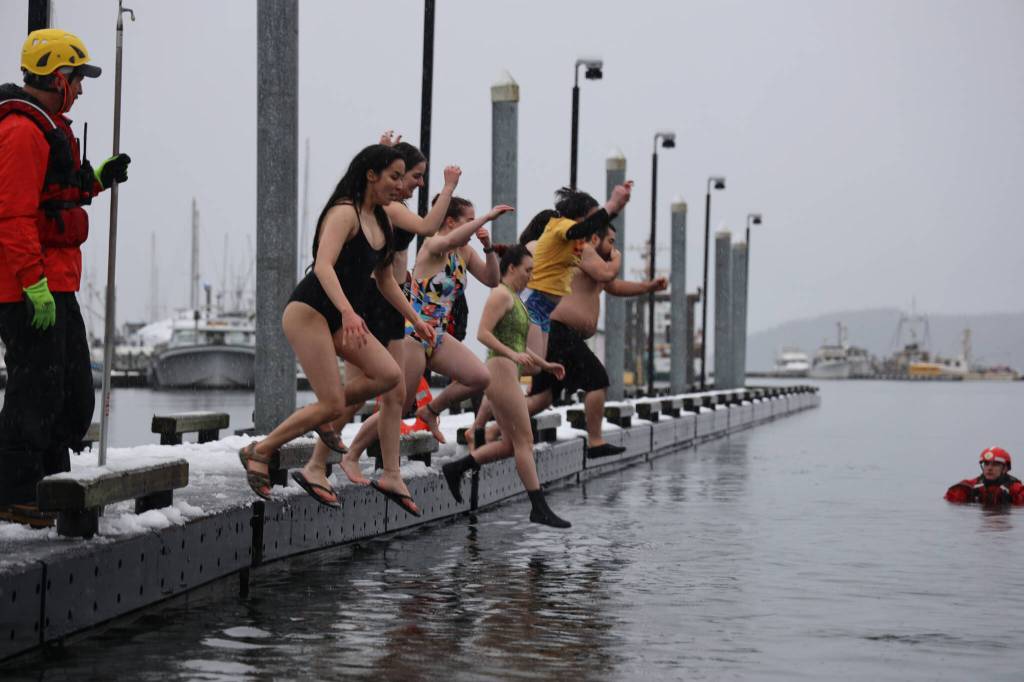 Freezin’ for a reason: UAS students and Juneau residents take a plunge at Auke Bay