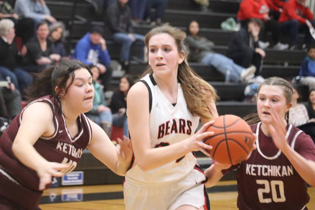 The Crimson Bears managed to find that missing fire by Saturday’s game as they came back to win against Ketchikan 43-29, maintaining a lead in all four quarters. This time it was Hargrave who led the way in scoring with 13 points, Tuckwood with 11, Laudert had 9, junior Chloe Casperson had 5, senior Carlynn Casperson had a 3-point shot in the third quarter, and Miller finished with 2 points.