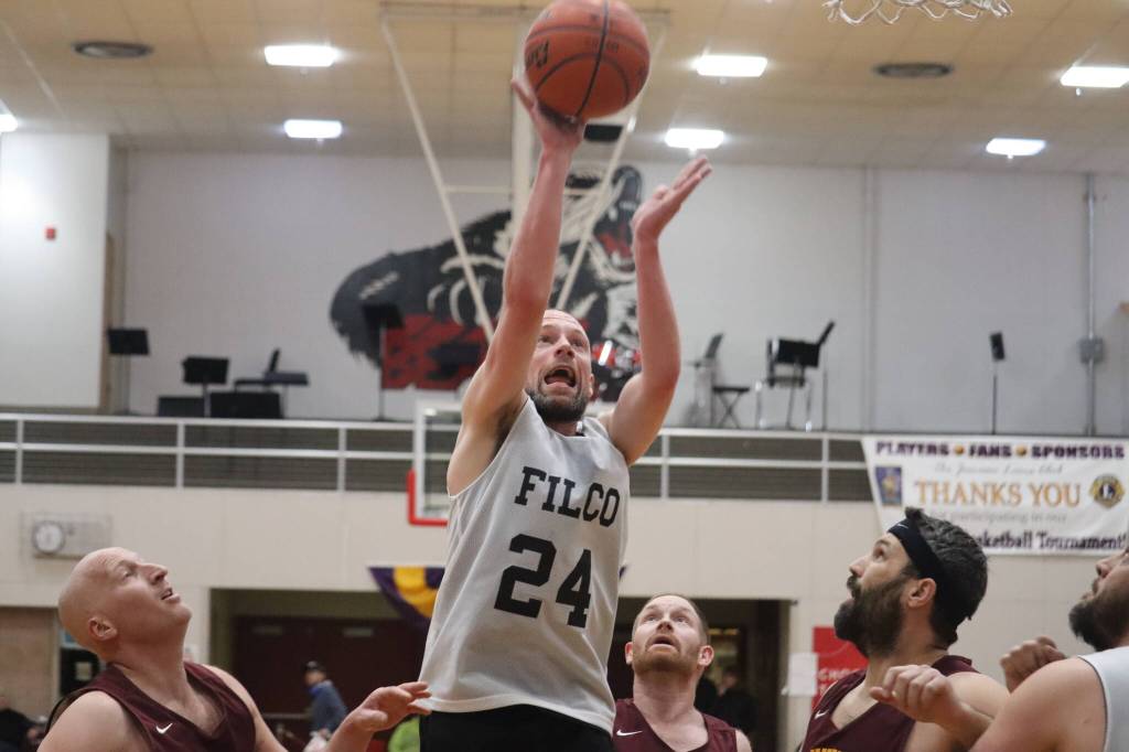 Filcom’s Alex Heumann (24) puts up a jump shot against Klukwan on Thursday for the second C bracket game of the day in this year’s Gold Medal basketball tournament. Heumann finished the game with 27 points, and his team netted a C Bracket win. (Jonson Kuhn / Juneau Empire)