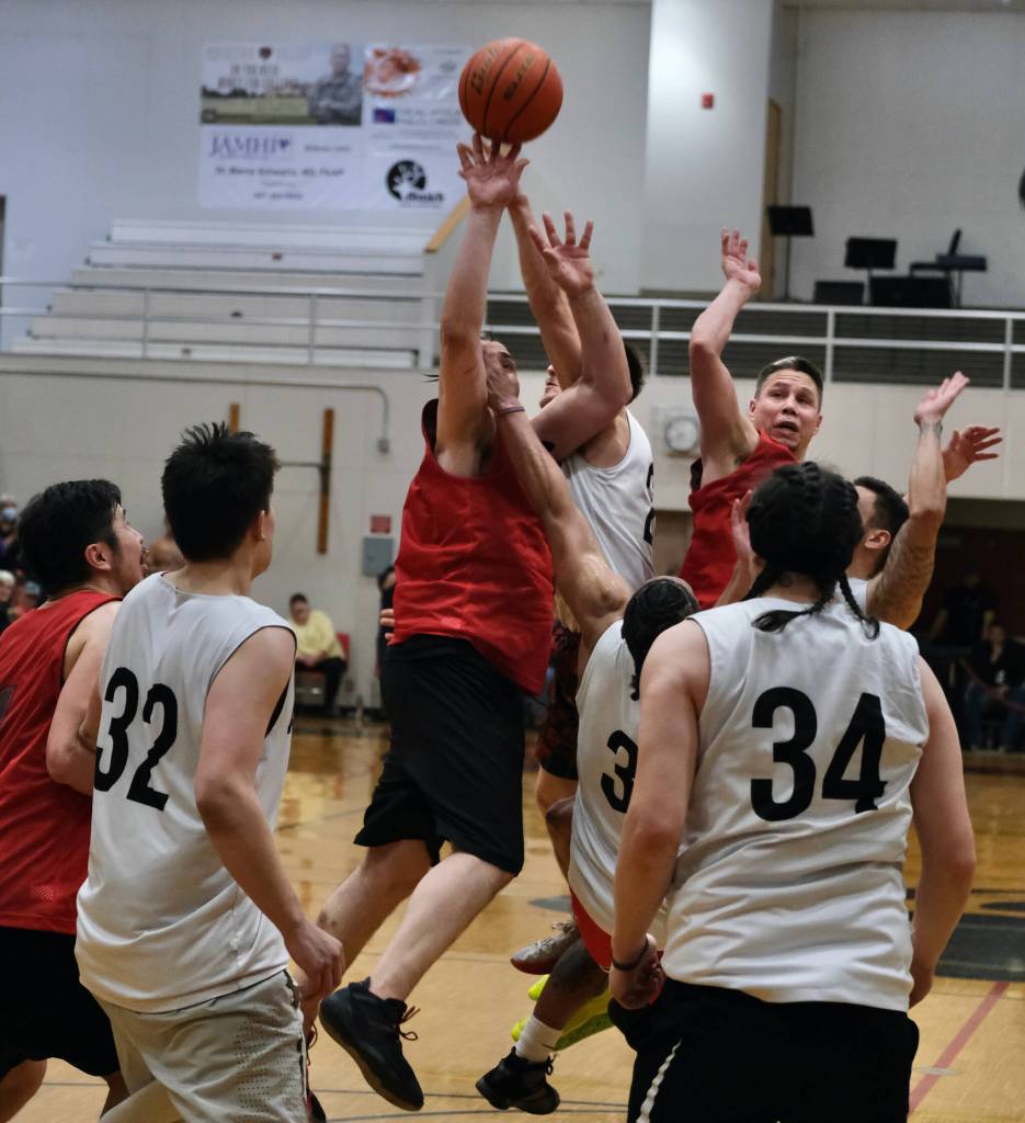 There would only be time to tip the ball in if missed and Hydaburg’s George Peratrovich kept Hydaburg’s title chase alive among a gaggle of players, tying the score at 79-79 for a second overtime.