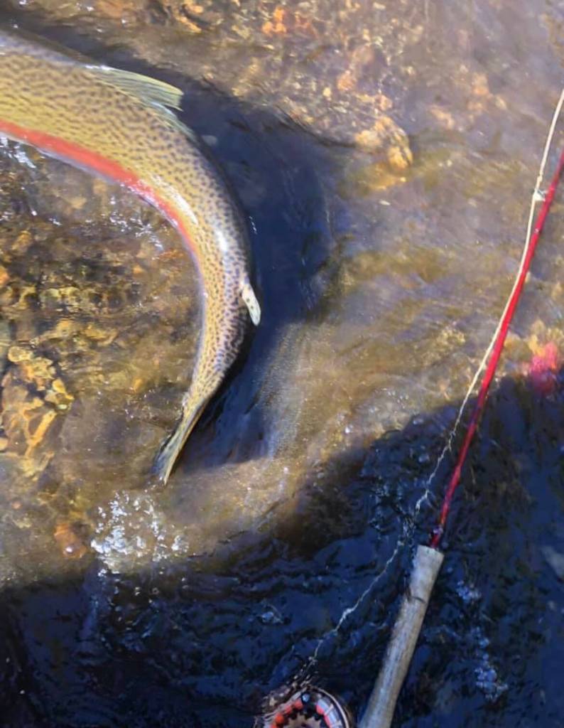 I reached down and tailed it, dropped my rod, turned it on its side, removed the hook and before I could admire it, water splashed into my face and down the front of my waders.
