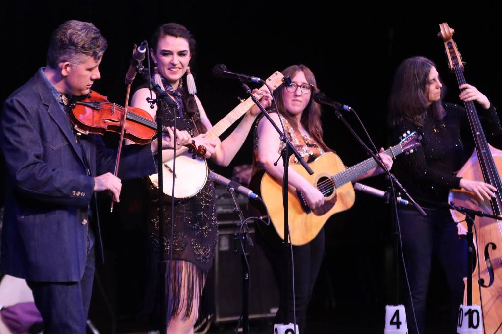 Folkapotamus featuring Andrew Heist, Annie Bartholomew, Erin Heist and Nicole Lantz play to a pack house Saturday night at JDHS for the 48th annual Alaska Folk Festival. (Jonson Kuhn / Juneau Empire)