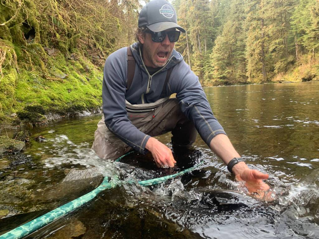 Abby hooked up shortly thereafter with a corker of a rainbow which we landed without incident. We called it a rainbow because I grew up with the distinction between steelhead and resident rainbow being the intensity and amount of spots below the midline. This is not scientific, it was just the distinction that made sense and has been true in my experience. At least on the rivers here in Southeast Alaska. The fact of the matter is that no one really cares. There are no audits of consequence when it comes to fly fishing memories.