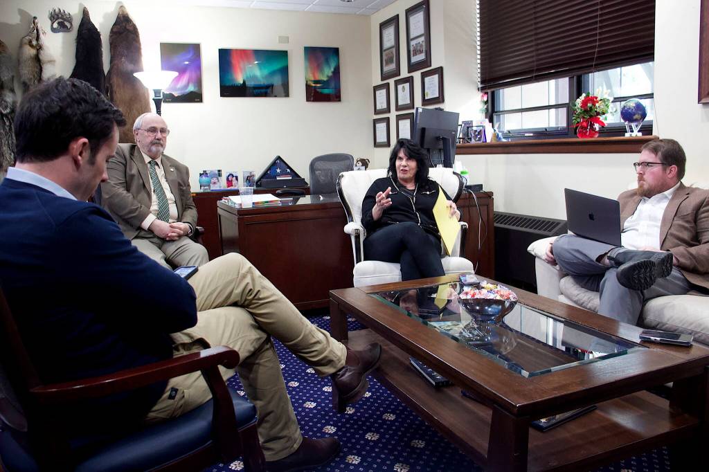 State House Speaker Cathy Tilton, R-Wasilla, and House Rules Committee Chair Craig Johnson, R-Anchorage, talk to reporters in the speaker’s office Friday afternoon about the House’s priorities during the last 13 days of this year’s scheduled legislative session. Both legislators said a cap on spending is a priority of the Republican-led House majority as the budget for next year and the size of this year’s Permanent Fund dividend remain the biggest unresolved issues. (Mark Sabbatini / Juneau Empire)