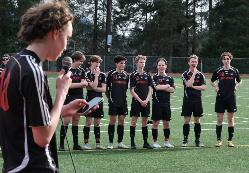 The Juneau-Douglas High School: Yadaa.at Kalé Crimson Bears senior boys soccer players got the ball rolling, literally, Thursday night during their final home match on the Adair Kennedy pitch and underclassmen preserved an unbeaten season and a clean slate in an 8-0 win over Thunder Mountain High School.