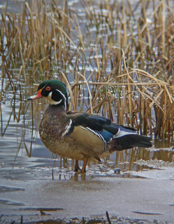 The big excitement on my home pond was the unexpected appearance of two pairs of wood ducks. I’ve never seen them here before, although they’ve been rumored to nest occasionally in the lower Valley. As of this writing, the wood ducks have been here for over a week, and I saw one pair copulating. They nest in boxes and tree cavities, but I have no idea if suitable cavities are available near here. They got along peaceably with the mallards that remained on the pond.