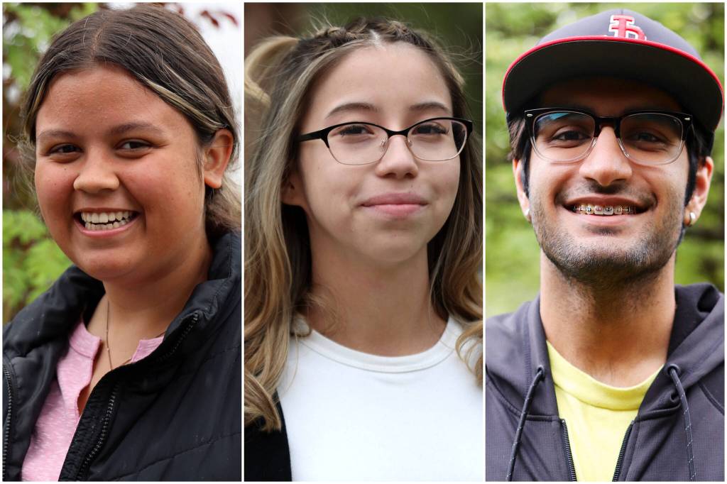 This combination image shows senior students Kiley Morris, 18, of Thunder Mountain High School, Helen John, 17, of Yaakoosgé Daakahídi High School, and Krishna Bathija, 18, of Juneau-Douglas High School: Yadaa.at Kalé. Each is scheduled to speak at their respective graduation ceremonies on Sunday. (Photos by Juneau Empire staff)