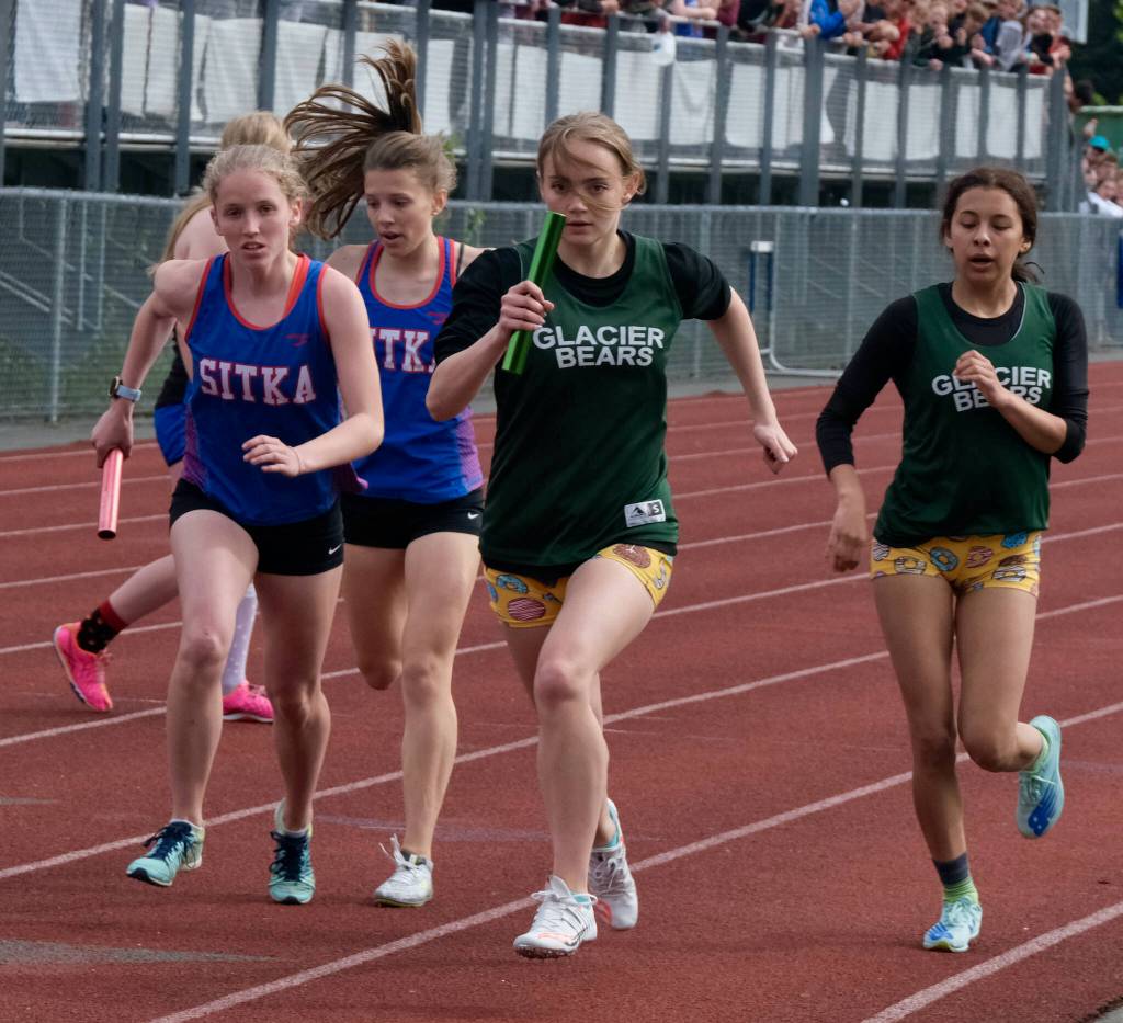 Sitka won the boys 4×800 with senior Dylan Crenna, sophomore Connor Hitchcock, senior James Helem and junior Annan Weiland hitting 8:39.64.