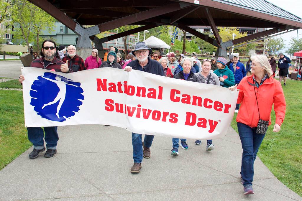 The annual walk is organized locally by Cancer Connection on National Cancer Survivors Day. This year’s theme was “celebration,” and featured a land acknowledgment, a bagpipe player who led the walkers during a portion of the route and Alaska Native Dancers who performed at the end.