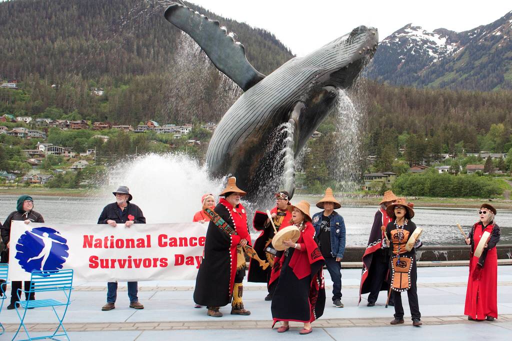Several songs were performed by the Yées Ḵu.Oo Dancers next to the whale sculpture at Bill Overstreet Park. Sheryl Weinberg, president of Cancer Connection, said adding them and the other new participants this year was simply a matter of “being thoughtful and being inclusive.”