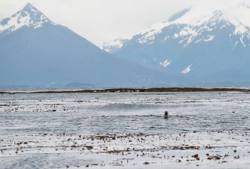 A harbor seal pokes its head up near Low Island in Sitka Sound on June 1. The area was the site of a fatal charter boat accident May 28. (James Poulson/The Daily Sitka Sentinel via AP)
