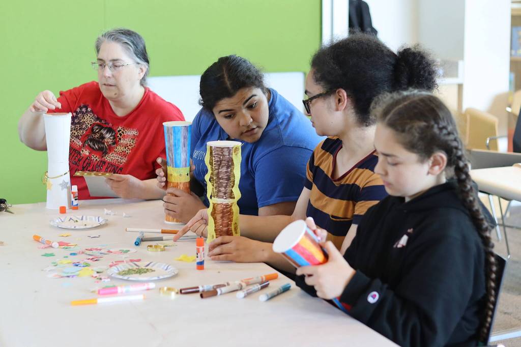 Those attending Saturday’s event then got a chance to observe and play a range of African instruments brought to the event, and make their own mini djembe drums with paper cups and various “shaker” sound fillings such as split peas and jingle bells.