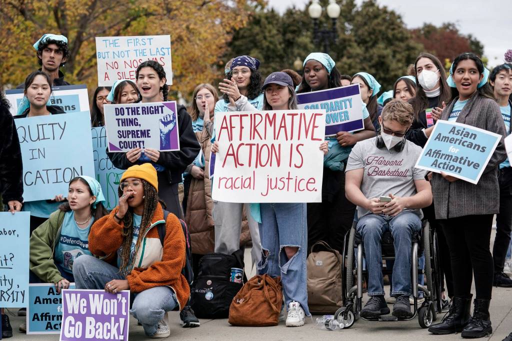 Activists demonstrate as the Supreme Court hears oral arguments on a pair of cases that could decide the future of affirmative action in college admissions, in Washington, Oct. 31, 2022. The Supreme Court ruled Thursday that colleges and universities must stop considering race in admissions, forcing institutions of higher education to look for new ways to achieve diverse student bodies. In a 6-3 decision, the court struck down admissions plans at Harvard and the University of North Carolina, the nation’s oldest private and public colleges, respectively. (AP Photo/J. Scott Applewhite, File)