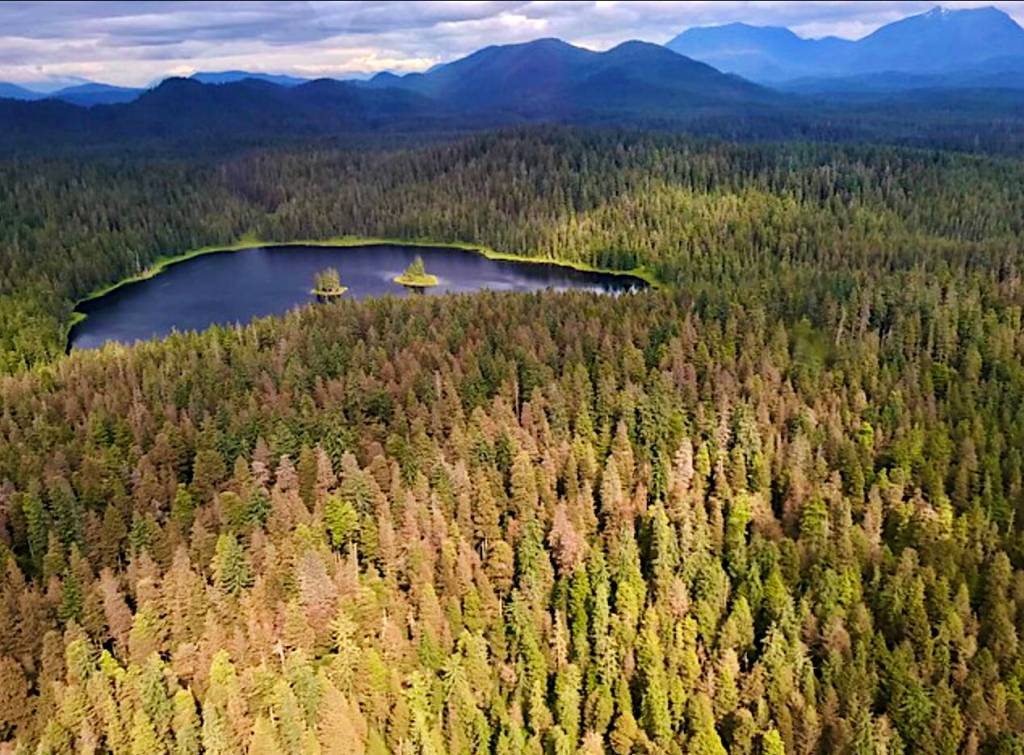 Widespread damage from western blackheaded budworms is seen on Admiralty Island in July of 2021. (Robin Mulvey / U.S. Forest Service)