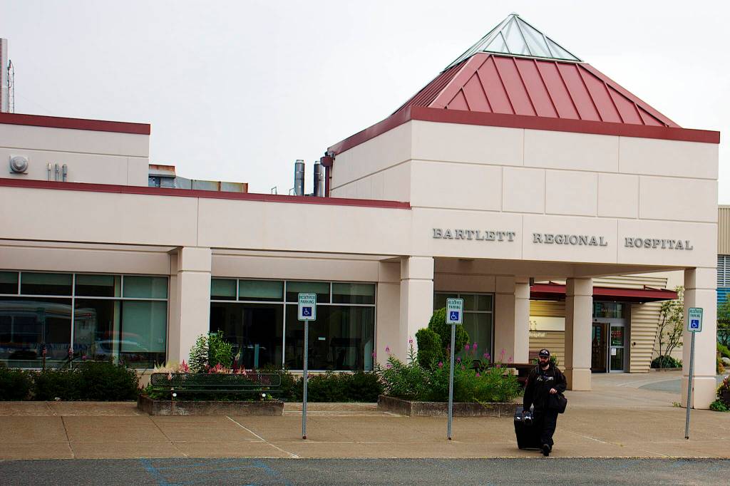 A person departs Bartlett Regional Hospital on Wednesday morning. Hospital officials said Tuesday they expect to begin providing home health and hospice care services as soon as Thursday, after they were halted last October by an organization which had provided such services locally for 20 years. (Mark Sabbatini / Juneau Empire)