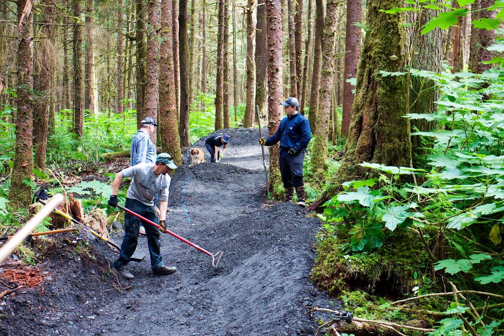 The quality of the nearly finished trails was praised by Reid Graham, 13, a Colorado resident who spends half of his summers with his dad in Juneau, and frequently rides existing trails throughout town and showed up to help with Saturday’s volunteer work.