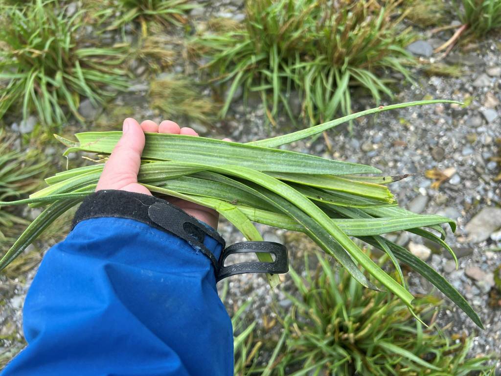 I’m on the beach harvesting a basketful of late-stage goose tongue leaves (suktéitl’, Lingít). I knew that goose tongue can be pickled, but I wanted to try to pickle the later-stage leaves at the end of the harvesting season that’ve grown larger but haven’t turned woody and lost flavor yet.