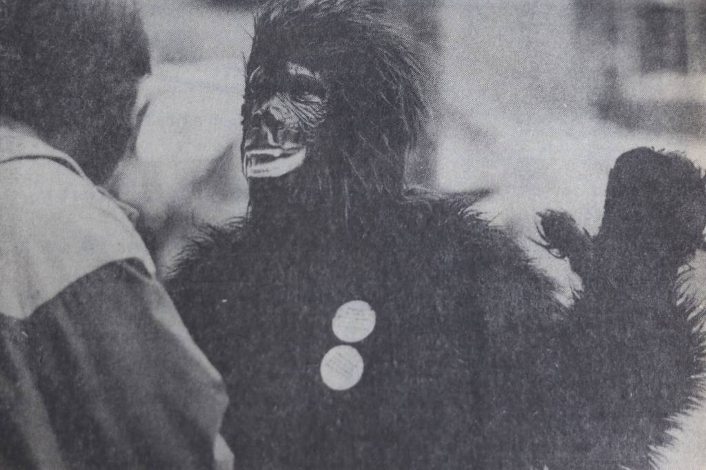 Original Story: “Joe Gorilla: Spoof candidate swings into mayoral race” by Chuck Kleeschulte. 09/09/1985