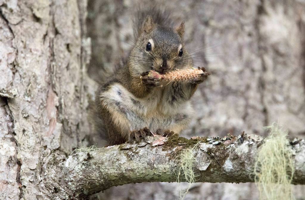 Pine cones on the menu for an American red squirrel spotted in Juneau on July 14. (Courtesy Photo / Kenneth Gill, gillfoto)