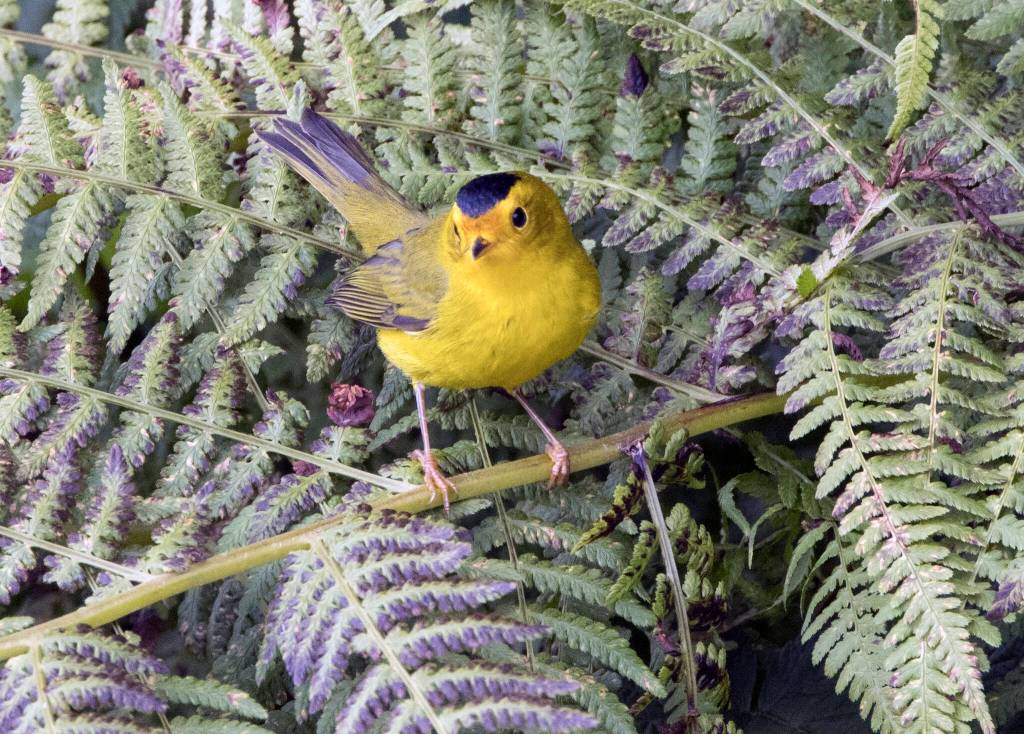 A Wilson warbler on a garden fern at about 16-Mile Glacier Highway on Aug. 17. (Courtesy Photo / Kenneth Gill, gillfoto)